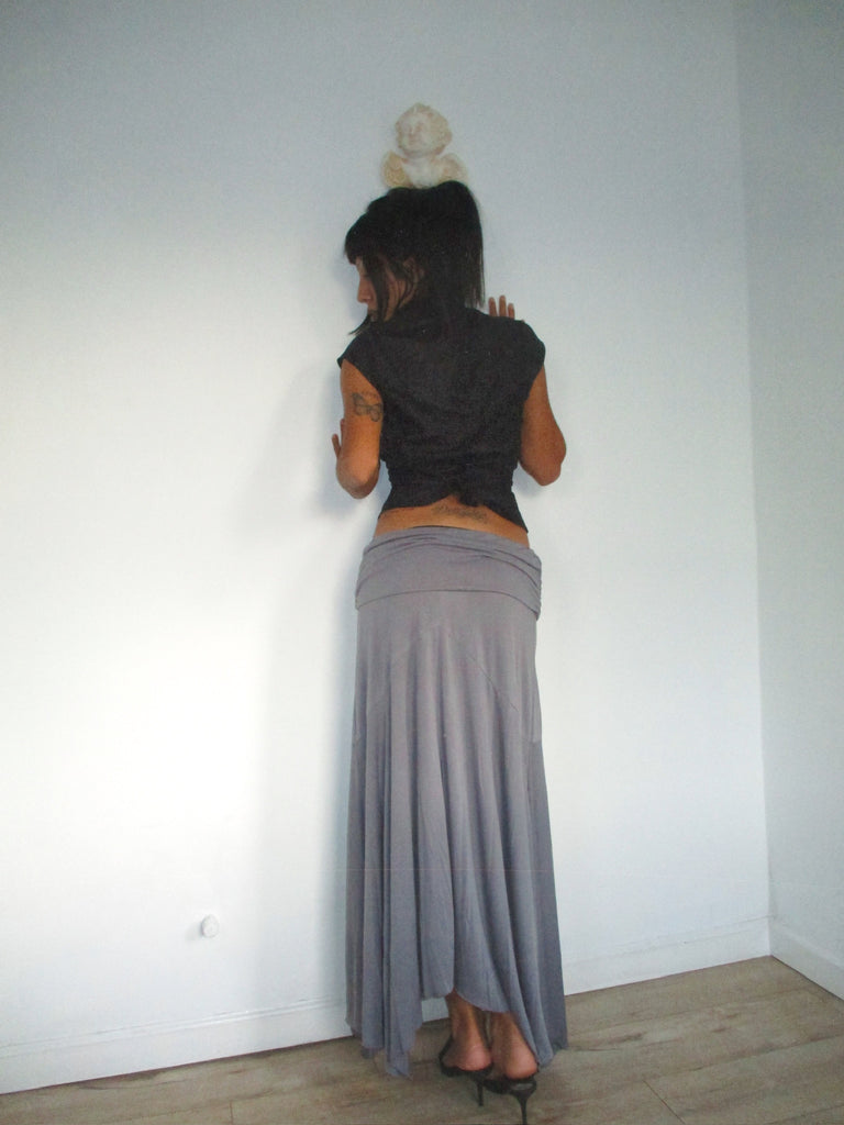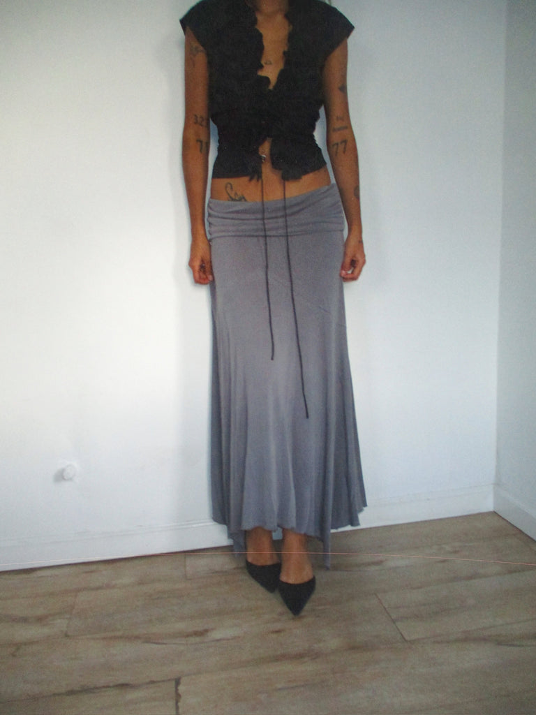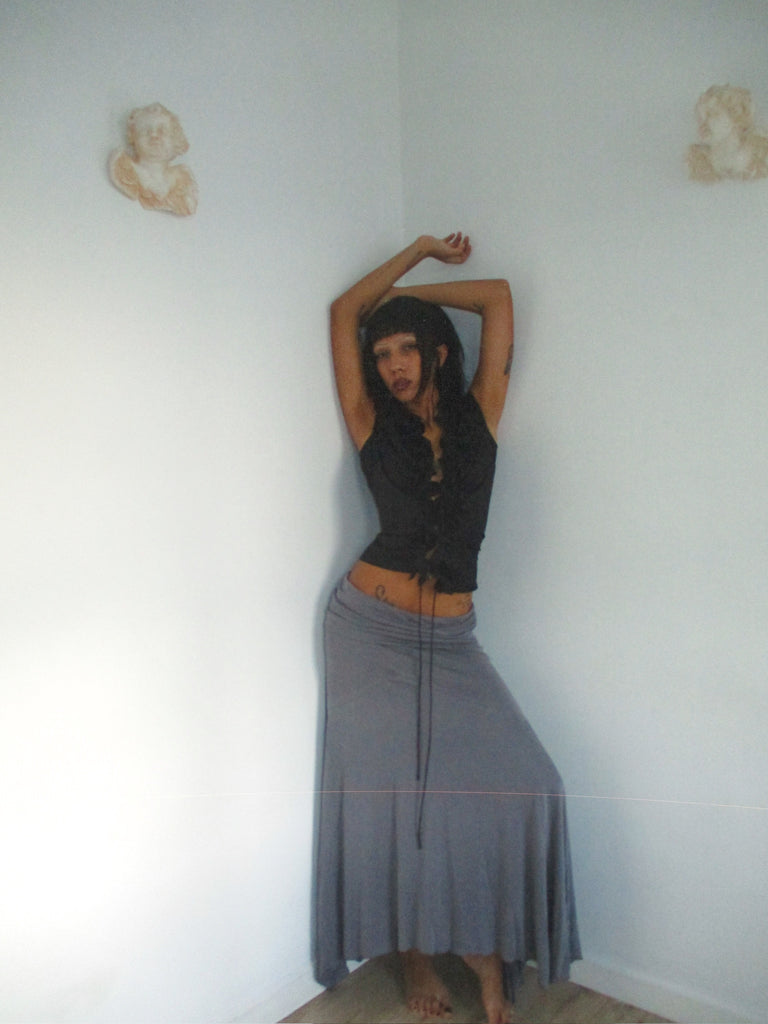 The Elianna Skirt is designed with a softly draped handkerchief hem for effortless movement. The ruched elastic waist creates a flattering, sculpted shape in a midweight jersey knit.