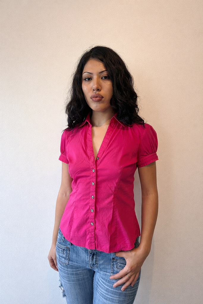 The Vintage Express Pink Button Up Top